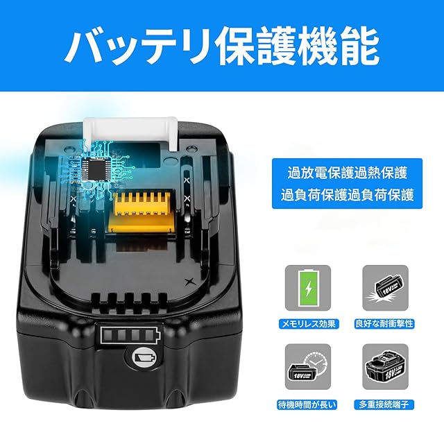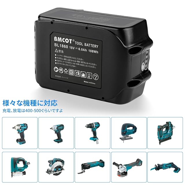 幅広く使われる: マキタバッテリー18v BL1860B 対応の機種:BL1860B、BL1850、BL1840、BL1830、BL1830B、BL1820B、BL1815、BL1815N など。このBL1860互換バッテリーはたっぶり6.0Ah 超高容量入っており、頻繁に充電する必要ないです。