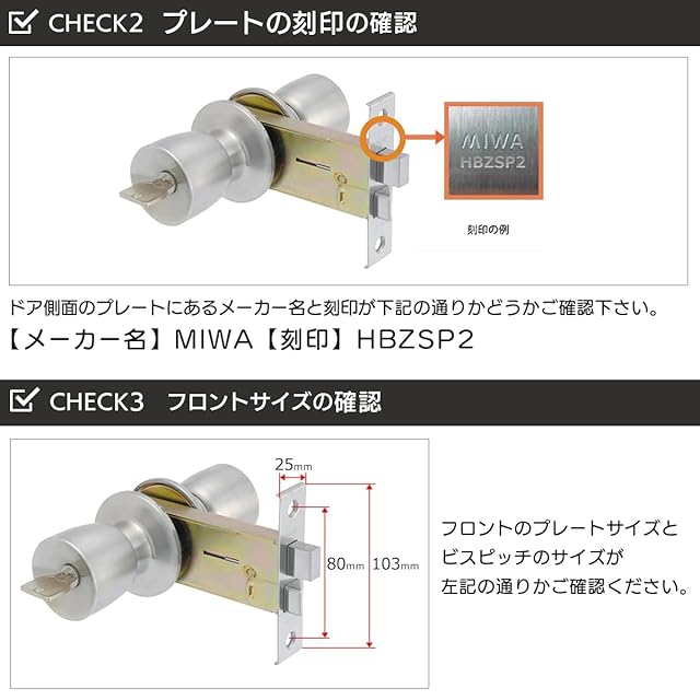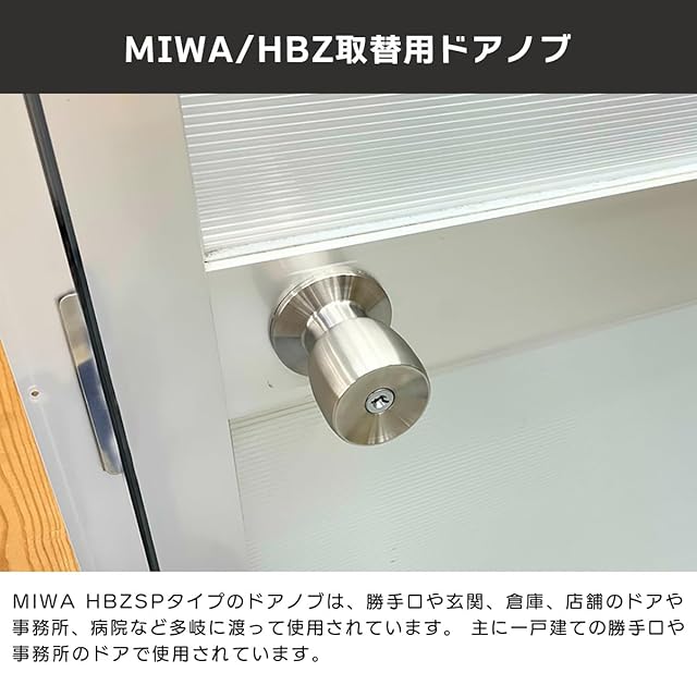 MIWA( 美和ロック )の鍵付きの交換ドアノブです。この錠前は玄関ドアや勝手口によくついています。年数が経って、ドアノブが回りにくい、ロックしにくいという症状が出たら交換の合図です。HBZSP1とはフロントプレートの形状が異なります。