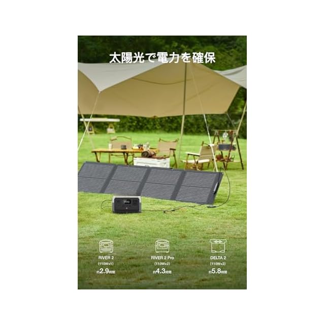 【最速のソーラーパワー充電器&高い発電効率】EcoFlow 110Wソーラーパネル充電器は、単結晶シリコンセルを使用し、高速で最速の充電速度を実現します。太陽光の転換効率は21〜23%と高く、太陽光エネルギーを効率的に使って充電ができます。