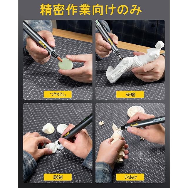 ささやくような静かさ: Fanttik F2 Master ミニルーターはブラシレスの中空カップモーターを搭載しており、普通モーターに比べてノイズが30%低減されます。回転速度は25,000 RPMに達し、もっと強力なパフォーマンスまたもっと少ない熱を実現します。5段可変速度設定により、さまざまな精密作業を簡単に対応できます