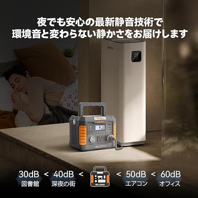 【バックアップ電源】:P300ポータブル電源はリン酸鉄リチウムイオン電池を搭載しており、充放電サイクル回数は4000回(一日一回利用する場合、約11年間利用可能)で、4000回使用後も工場出荷時の80%程度の電池残量を維持します。電力での長期保管も可能で、緊急時には十分な残量を確保できます。防災グッズとしてポータブル電源を備えていると安心感を得ることができます。また、純正の正弦波を採用しており、六つの出力ポートにより、最大6台のデバイスを同時に充電することができ、停電時でもスマートフォンの充電や最低限の電力供給が保証されます。
