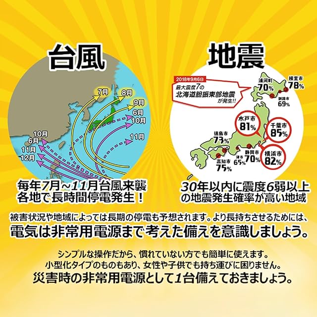 【安心のアフターサービス(24時間以内返信保証)&回収保証】Togo Power株式会社では最長3年間の保証(通常1年間+保証登録で2年間延長=計3年間)を提供しています。製品の品質には万全を期しておりますが、万が一不良、破損、誤納品、または正常使用による不具合が発生した場合には、無料で修理または交換の対象となります。当社は24時間以内返信することを保証します。 通常8時間以内に返信しますが、不測の原因で最大24時間返信する場合もあります。ご購入後に何か問題が生じた際は、迅速に対応させていただきますので、遠慮なくお問い合わせください。(パッケージには保証書と日本語説明書が付属しています)。個人処分なら難しいの問題を対応するために、Togo Powerでははご使用済みのポータブル電源の回収を承っており、回収したポータブル電源は廃棄せずにリサイクルしています。地球環境に優しいアイテムを日常に取り入れたい方にも、Togo Powerのポータブル電源はおすすめです。