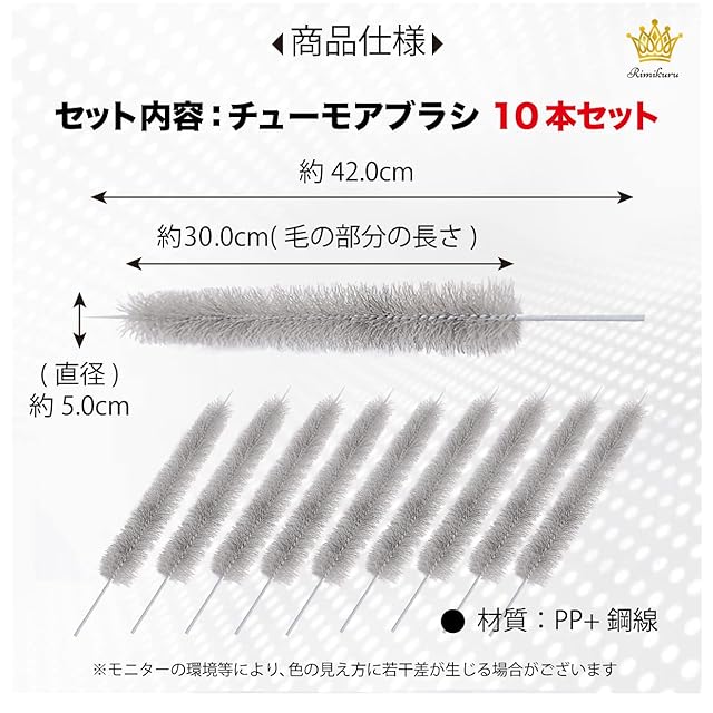 【商品仕様】セット内容:チューモアブラシ 10本セット サイズ:(直径)約5.0cm × (長さ)約42.0cm (毛の部分の長さ)約30.0cm 材質:PP+鋼線 ※モニターの環境等により、色の見え方に若干差が生じる場合がございます。