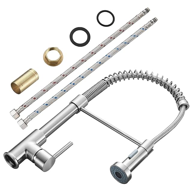 家族のヒーローになろう -- 取り付け簡単 -- キッチンシンクの蛇口はクイックコネクトデザインとオプションのデッキプレートが付属しています。配管工は必要なく、30分以内にDIYインストールを完了します。お金と時間を節約できます!