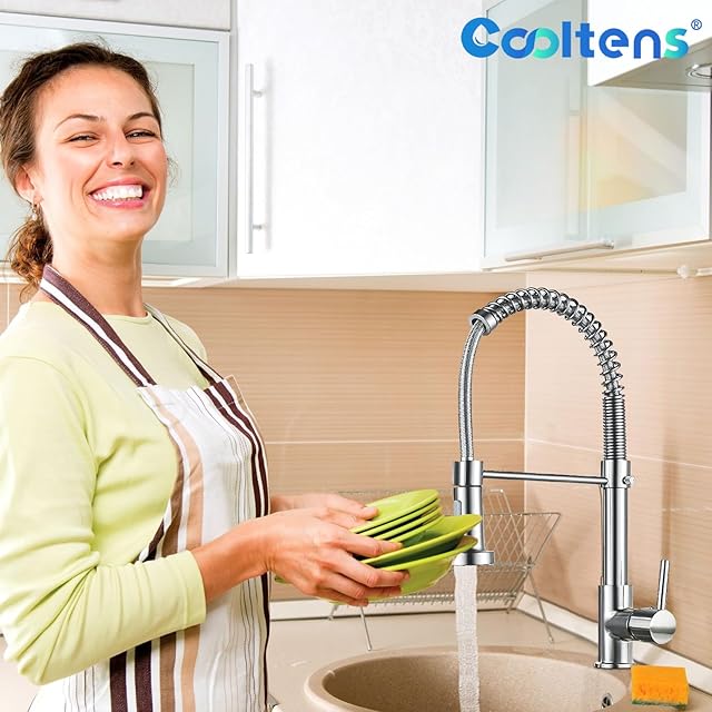 Cooltens キッチン 蛇口 台所用混合栓 シングルレバー混合栓 ハンドシャワー付 台所用混合栓 節水シャワー 真鍮製 スプリング式
