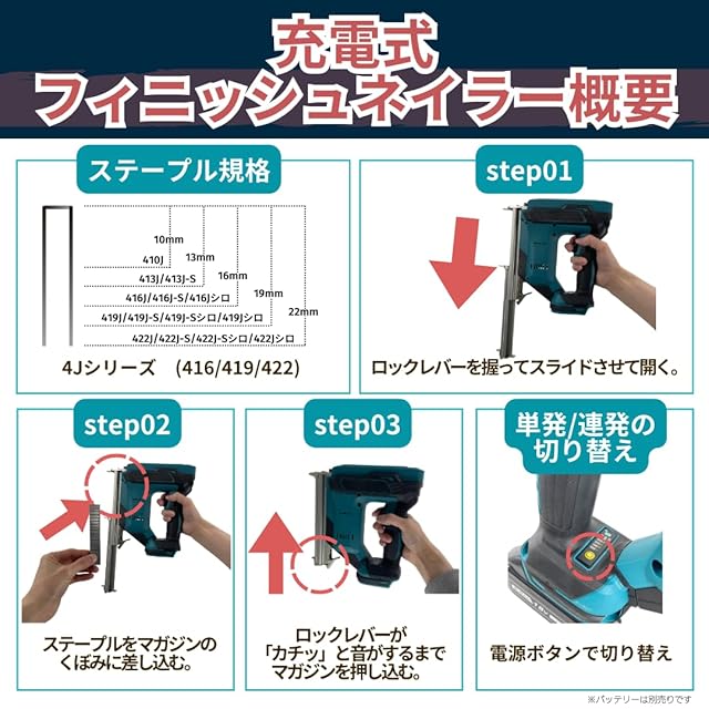 ※こちらはステープル専用です。ピンネイル、フィニッシュネイルは使用できません。