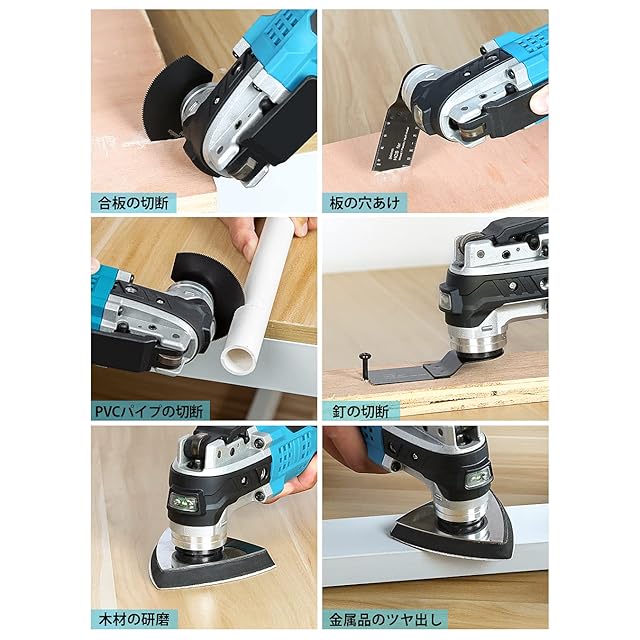 【着装簡単&用途様々】替刃を着装・交換するのに、工具不要、スムーズに操作できて、レンチの必要もなく、作業中に替刃の変更が素早く安全に行うことができます。振動角度3°で、木材や石膏ボードはもちろん、釘や鉄筋などの金属、断熱材やゴムなどの柔らかい素材まで切断できます。木材の研磨はもちろん、タイルの目地削りなど細かい部分に便利です。さまざまな部材や、切断・剥離・研削作業に対応可能!