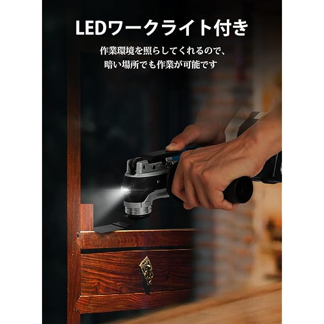 Mrupoo 充電式マルチツール 電動振動ツール スペック角度3° HY-7041 コードレス 6段階変速型 LEDライト マキタ 18V バッテリー用 多機能電気工具 一台多役 切断&剥離&研磨&錆落とし 木工 アクセサリー交換簡単 日曜大工 DIY初心者向き