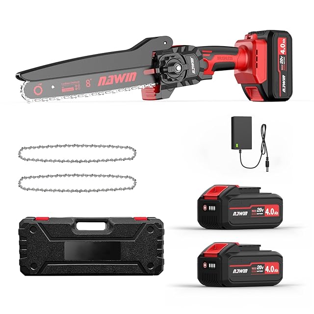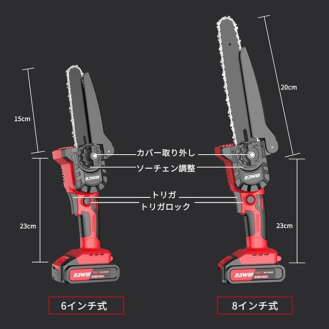 ナウィン 充電式チェーンソー 工具レスで調整 バッテリー2個 コードレス ブラシレスモーター 軽量 伐採・枝払い・枝打ち・薪作り・庭木の剪定 取扱説明書 収納ケース (8インチ&軽量)
