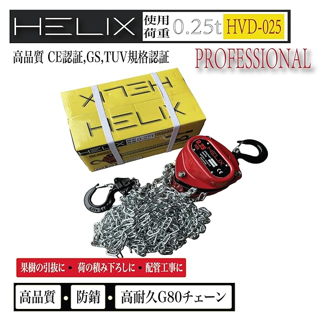 HELIX チェーンブロック 0.25t 2.5m チェーンホイスト レバーホイスト 荷締機 手動 吊り上げ 250kg チェーンローラー HVD-025