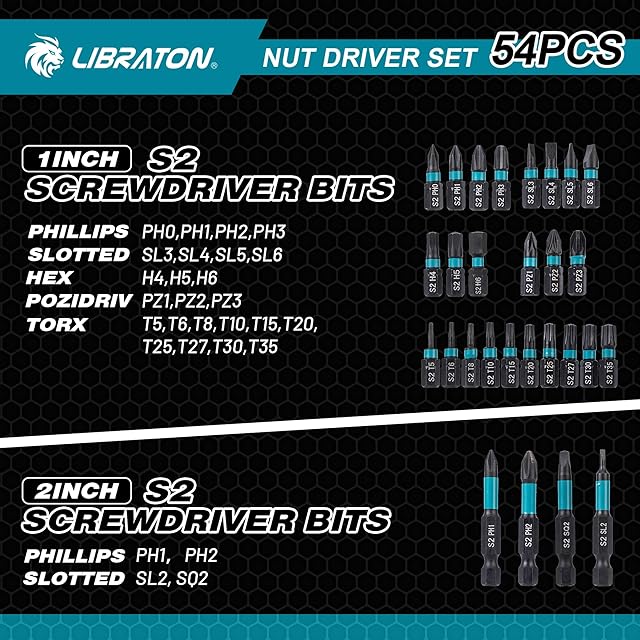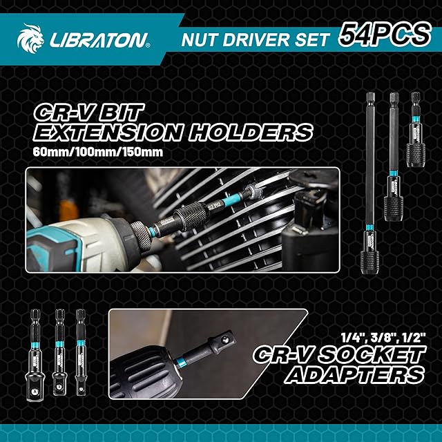 LIBRATON インパクトドライバー用ソケット 54点セット ソケットビットセット 電動ドライバービット ソケットアダプター ビットホルダー 蝶ネジソケット エクステンションバー