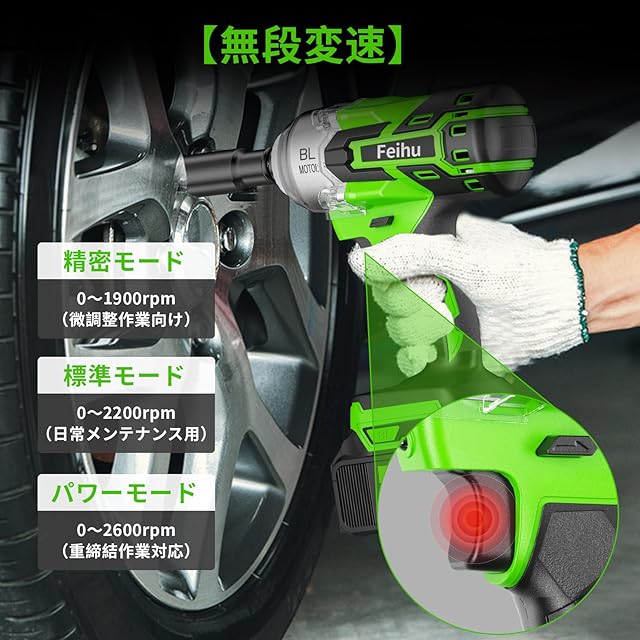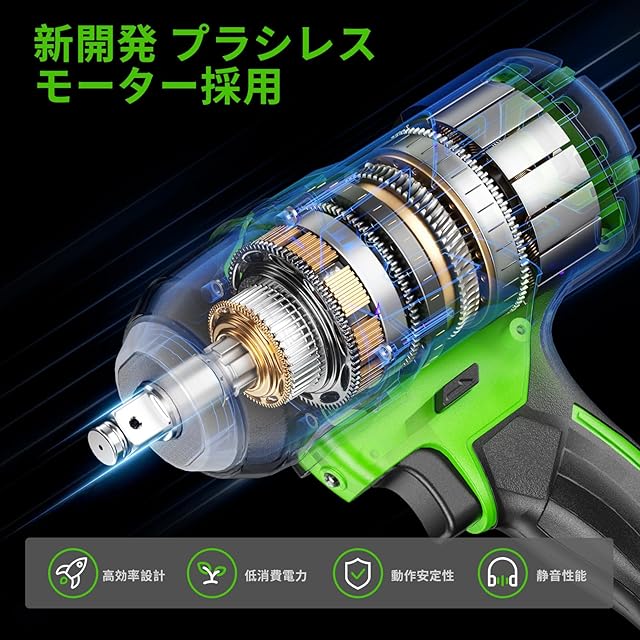 【ブラシレスモーター採用&一台3役】自動車の修理、タイヤ交換用のインパクトレンチだけではなく、ドリルドライバー とインパクトドライバーとして使えます。ホームメンテナンス、およびナットの締め付けとボルトの緩みに最適です。ブラシレスモーターを採用することで、より強力で長寿命、迅速な冷却、高い効率を実現しています。その上、バッテリーには過温度保護や短絡保護などの多様な自己保護機能が備わっており、安全性と耐久性にも配慮しています。