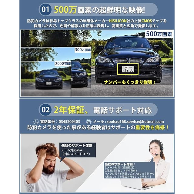 「PSE認証済み・2年品質安心保証」弊社の製品は出荷前に全て検査して、無異常ことを確認済みで出荷しております。 本製品はご購入日から2年の品質保証です。「電話/メール対応」 防犯カメラセットについてご不明点やご質問がございましたら、ご遠慮無く弊社に連絡ください。電話番号:0345209403(年中無休)、[email protected](24時間) ☆連絡方法:「アカウントサービス」>「注文履歴」>「販売元」>「お問い合わせ」