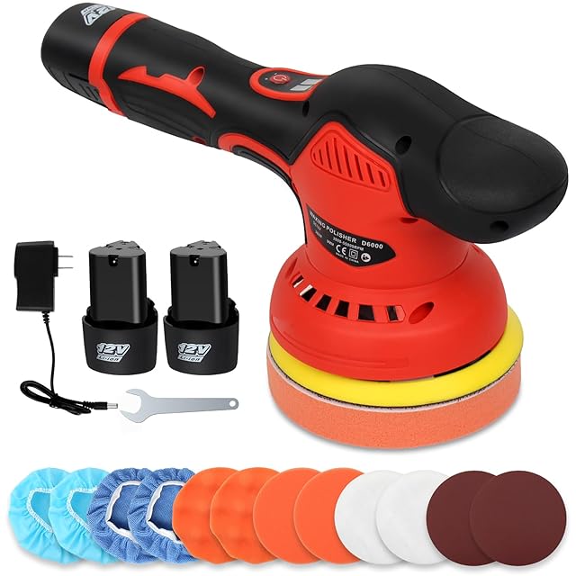 【8段階変速機能、12V大容量バッテリー】 ミニポリッシャーの回転数を2800から5500rpmまで8段階で簡単に調整できます。ワックスがけや磨きには低速 (1~2)、クリーニングには中速 (3~4)、塗装の欠陥や酸化物を効果的に除去するには高速 (5~7) をご選択ください。ポリッシャーには12Vバッテリー2個と充電器が付属しています。 2つのバッテリーを交互に使用できるため、バッテリー切れを心配する必要がないです。