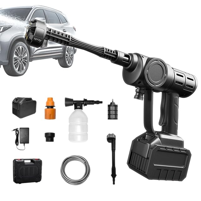 【アップグレードパワフルなモーター】強力な6 MPaのプレッシャーポンプを配備しており、大出力の全銅製モーターと効率的なポンプが組み合わさり、安定した圧力、一定の出水量、強力な水圧を提供します。300 Wのハイパワーモーター駆動で、出水圧力は最大250 L/h、頑固な汚れを効果的に洗浄し、お車を一新させます。
