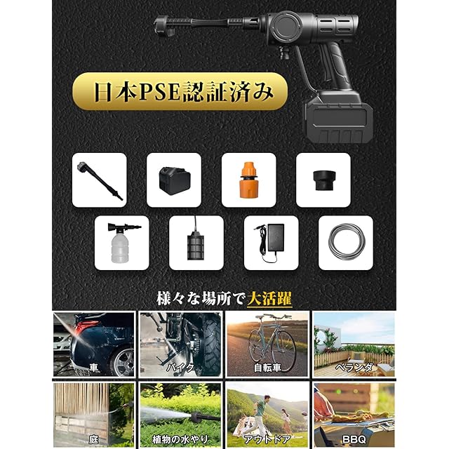 Le Dzx 高圧洗浄機 コードレス 充電式 22500mAh 大容量バッテリー 6in1多機能ノズル 8MPa 噴射距離10M 300Wブラシレスモータ自吸式 ポータブルガン洗車機 家庭用 高性能 持ち運び便利 PSE認証済洗浄機 日本語取扱説明書付き エアコン 浴室 玄関 ベランダ 年末大掃除 一年メーカー保証