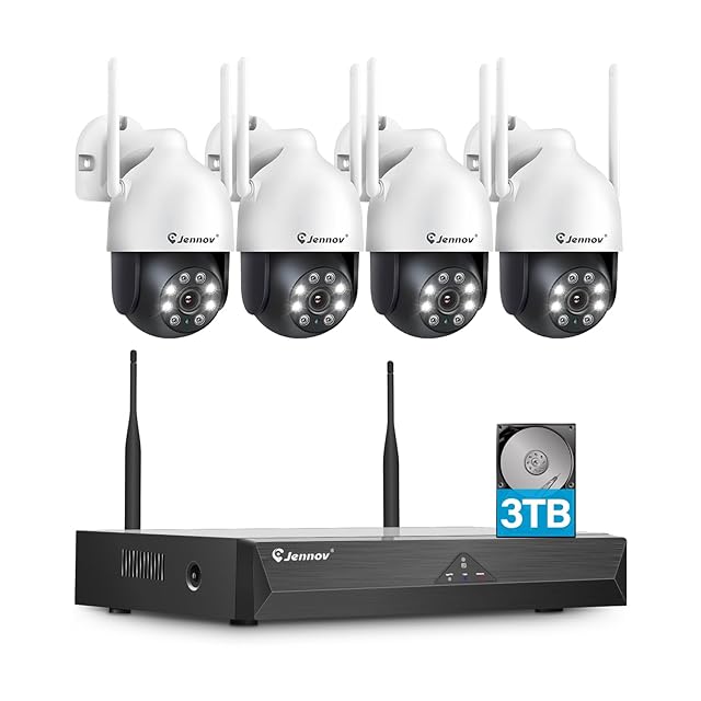 JENNOV 防犯カメラ 屋外 ワイヤレス 500万画素対応 4台セット AI人体検知 自動追尾機能 3TBHDD内蔵 24時間録画 360°全方位監視 屋外防犯カメラ IP67防水 WIFI 無線 監視カメラ 室内 双方向音声 カラー暗視撮影 投光威嚇 スマホ連動 パソコン タブレット 遠隔操作可 Eseecloud対応