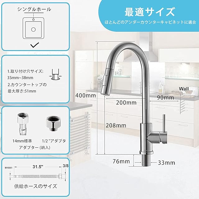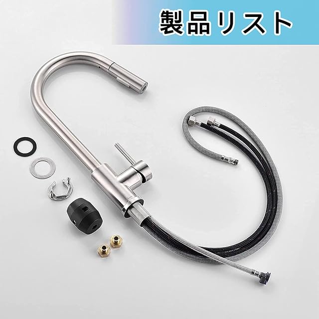 耐久性のある素材 - キッチンタップの本体は、家族全員の健康に配慮して、高品質の無鉛304ステンレス鋼で作られています。温水管と冷水管のpex素材は、臭気、毒性、味なしで水を使用することができます。