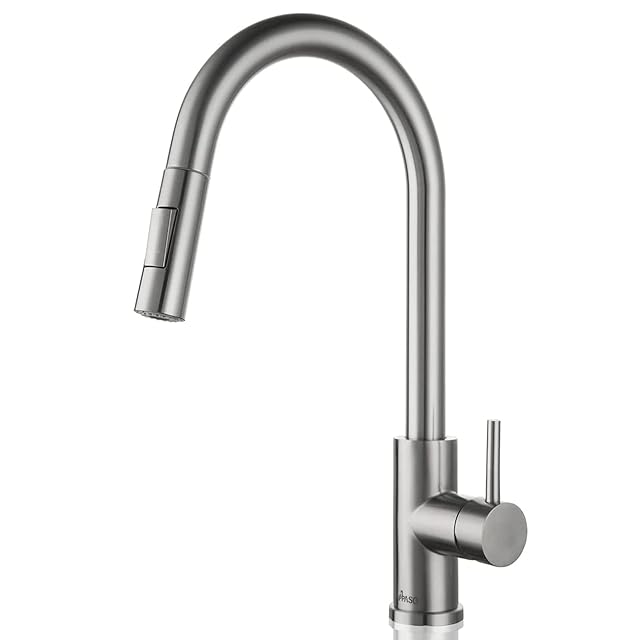 取り付けとメンテナンスが簡単 - キッチン蛇口のクイックインシステムは、配管工や特別なツールを使わずに4つの簡単なステップしか必要ありません。DIYのインストールを完了するのに約20分かかります。 優れた耐腐食性 & 防錆仕上げにより、汚れが蛇口の表面に付着するのを防ぎます。毎日の使用には十分な布製の蛇口です。