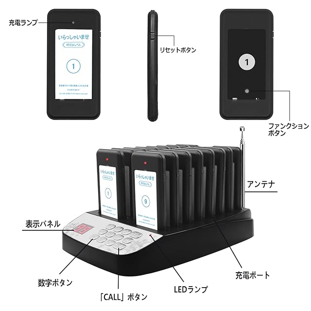 ◎【操作が簡単】ボタンを押すだけで誰でも簡単に操作できます。呼び出しベルを充電して送信機(本体)キーボードに番号を入れて、「CALL」ボタンを押すだけで、お客様にお知らせすることができます。ブザー停止ボタン搭載のため、お客様に不快感を与えません。