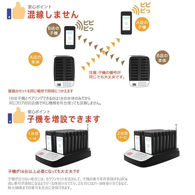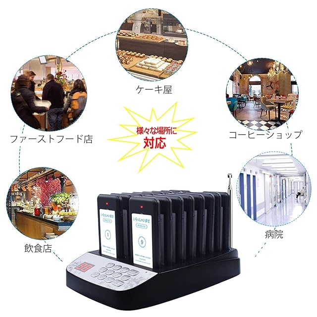 ◎【幅広い用途】カフェ、ファーストフード、フードコート等で使用されているお客様を呼び出すシステムです。ファミレス、居酒屋などの飲食店のオーダーや呼び出し、介護現場や病院等での緊急呼び出し、又は遊園地やホテル、ネットカフェ、駐車場、エステ、工場等使用場所はアイデア次第です。人件費の削減やサービス向上にお役立て頂けます。