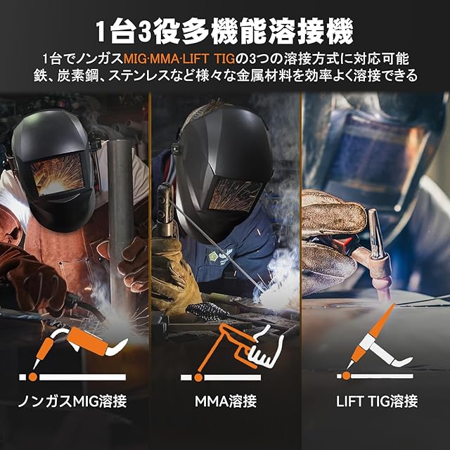 溶接機【溶接専門家松本氏監修】半自動溶接機 最大出力140A 100V/200V兼用 1台3役電気溶接機 LED液晶表示 ノンガスMIG/被覆アークMMA/LIFT TIG対応 定格使用率60% 電流調整 電圧自動調整 インバーター搭載 板厚8mmまで対応 ノンガス溶接機 家具や雑貨DIY 簡単な修理 車両整備 家庭修理に最適 初心者向け 日本語取扱説明書付き 小型軽量人気の家庭用溶接機
