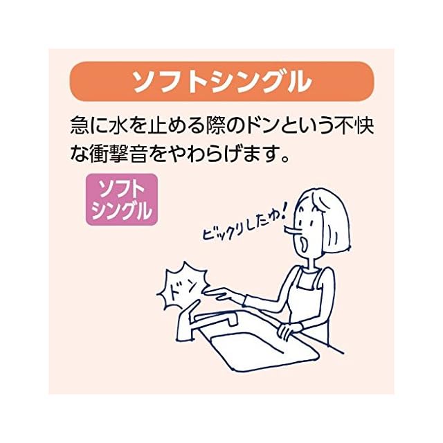 【ハンドル操作の衝撃音を和らげる】ソフトシングル仕様で、急に水を止める際のドンという不快な衝撃音を和らげます。