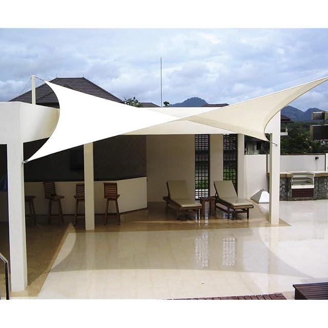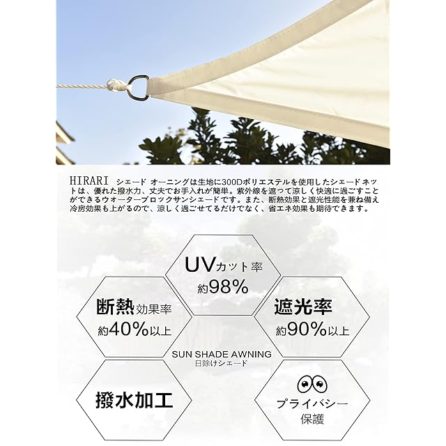 HIRARI 撥水 4M X 6M 長方形 UVカット シェード セイル アイボリー 300D防水ポリエステル