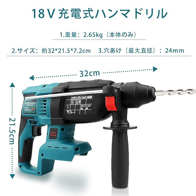 waitley 電動ハンマー コードレスハンマードリル 充電式 マキタ18Vリチウムイオンバッテリー用専用工具 コンクリート穴開け 電気ハンマードリル(本体のみ)