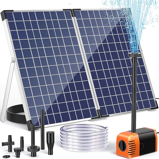 【強力なソーラーポンプ】ソーラーポンプは水位と流量を調節することができます。ポンプにはフィルターカバーと3枚フィルターがあり、汚れを除去してクリーニングしやすいです。最大流量は480 GPHで、最大昇降高度は約2.6メートルに達することができます。