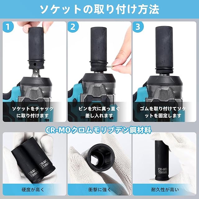 【幅広く使用&品質保証】セット内容:1本 * 電動レンチ、2本*インパクトソケット19mm/21mm(CR-MOクロムモリブデン鋼材料:硬度が高く、衝撃に強く、耐久性が高い)、1*日本語取扱説明書。このインパクトスパナは、建設現場、家庭用工具の修理、大工仕事、車の修理、タイヤの交換、家庭のメンテナンス、機械設備の建設などによく使用されます。弊社のすべての製品は1年間の品質保証を提供します。ご不明な点がございましたら、お気軽にお問い合わせください。 弊社は24時間以内にお客様に満足のいく返信をします。