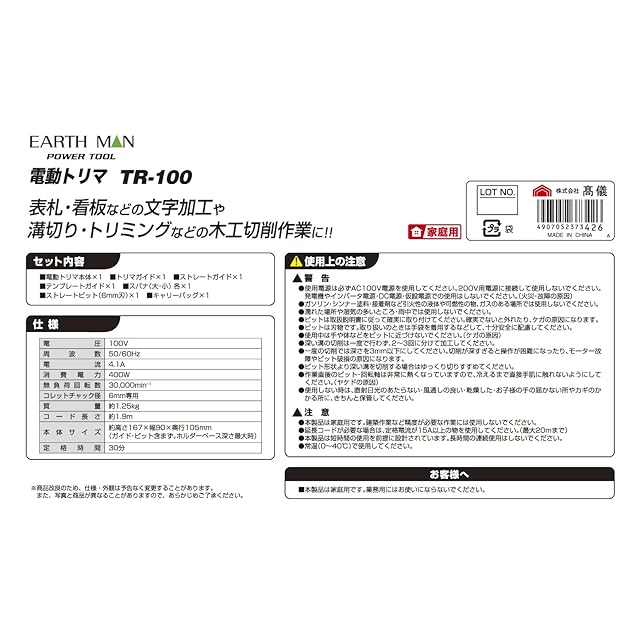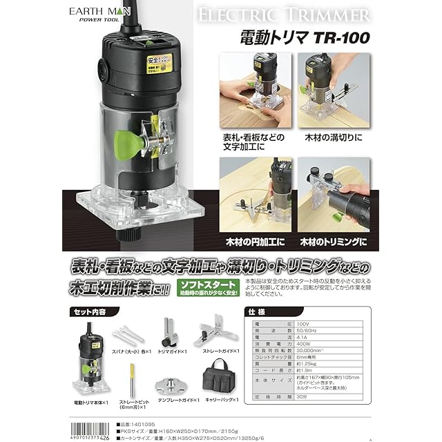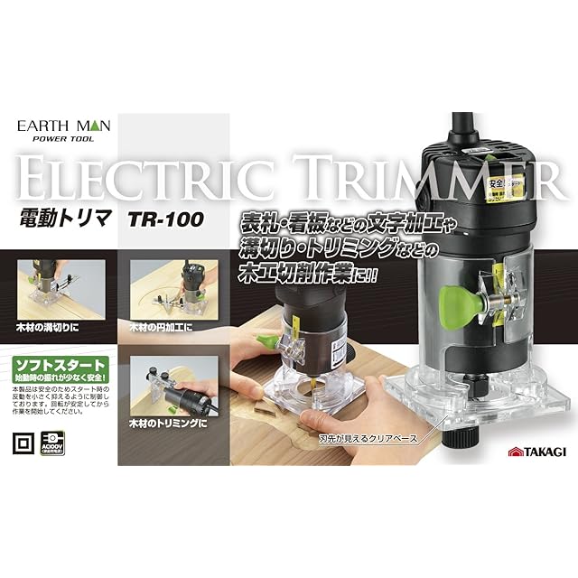 高儀(Takagi) 電動トリマ コード付き EARTH MAN TR-100【ソフトスタートにより始動時の振れが少ない】 トリマー 電動工具 電動トリマー DIY 電動カンナ