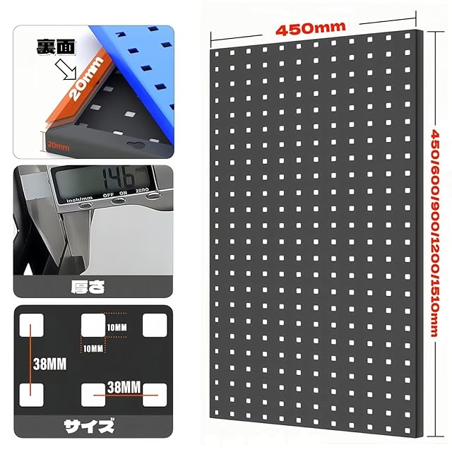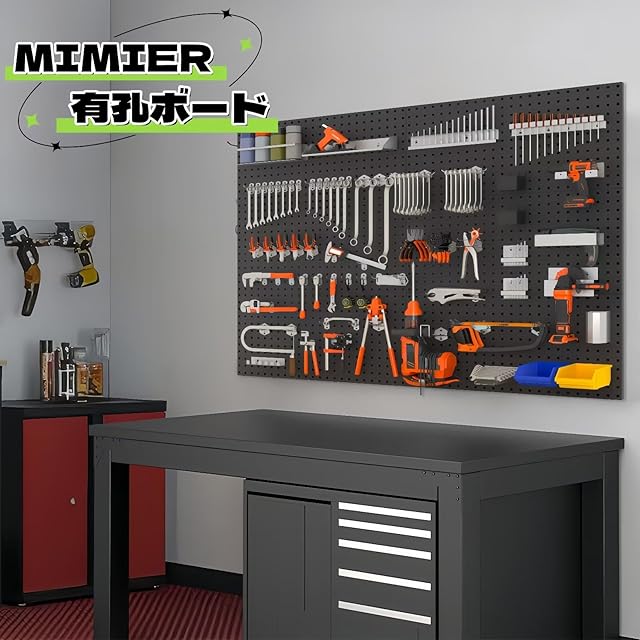 ★【機能性】小物工具類、各種スパナやレンチなどをフックに引掛けて整理・整頓に最適です。使用頻度の高い工具は「有孔ボード」に吊るすことですぐに手が届き、機能性も抜群です。必要な工具がどこにあるのかを一目で確認できるのも強みです。穴※フックは別売しております。