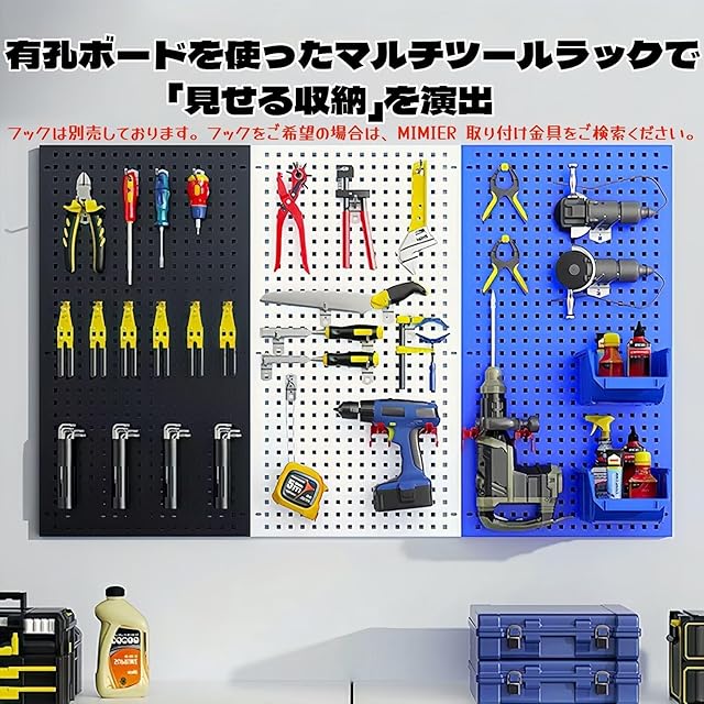 ★本格的な仕事ではもちろん、DIYでも便利に使えるスチール製の有孔ボードです。ボードとフックの組み合わせで壁面を有効利用でき、ツールラックとして機能します。※フックは別売しております。フックをご希望の場合は、MIMIER 取り付け金具をご検索ください。