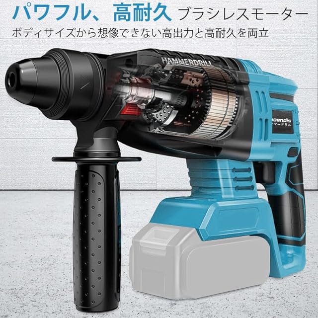 充電式ハンマードリル 18V 充電式ドリル 打撃ドリル ブラシレスモーター搭載 低振動機構 正逆転両用 ブロック・コンクリート・レンガ・木材・スチール・石材・壁・金属・木材の穴あけ、ハツリ(斫り)工事に最適 大工道具 DIY用 マキタ 18 バッテリー用 リチウムイオン BL1830 BL1840 BL1850B BL1860B BL1890Bなど 対応 日本語取扱説明書付き 【本体のみ】
