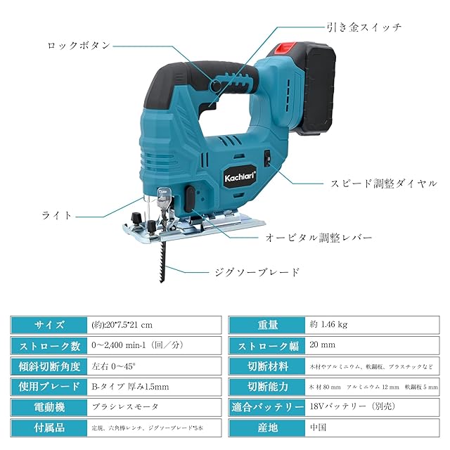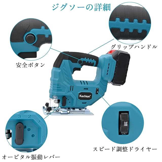 Kachiari ジグソー 充電式 18v ジグソー 切断 工具 電動 ノコギリ のこぎり 木材 DIY 安全 カット ライト 日曜大工 LED コードレス 鋸 コウグ ハイパワー LEDライト付き 家庭用 電気ノコギリ ブラシレスモーター DIY用 マキタ18Vバッテリー対応 BL1830 BL1840 BL1850 BL1850B BL1860 BL1860B 【工具本体だけ】