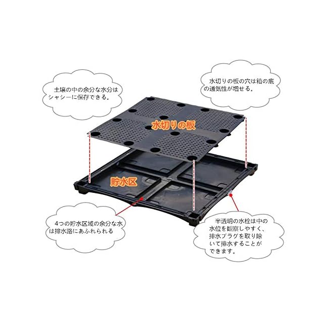 フィルターは余計な水を保存できて、ボックス両側の底穴は余計な水の排出に便利で、植物の根に必要な温度と湿度を適切なレベルに維持します。