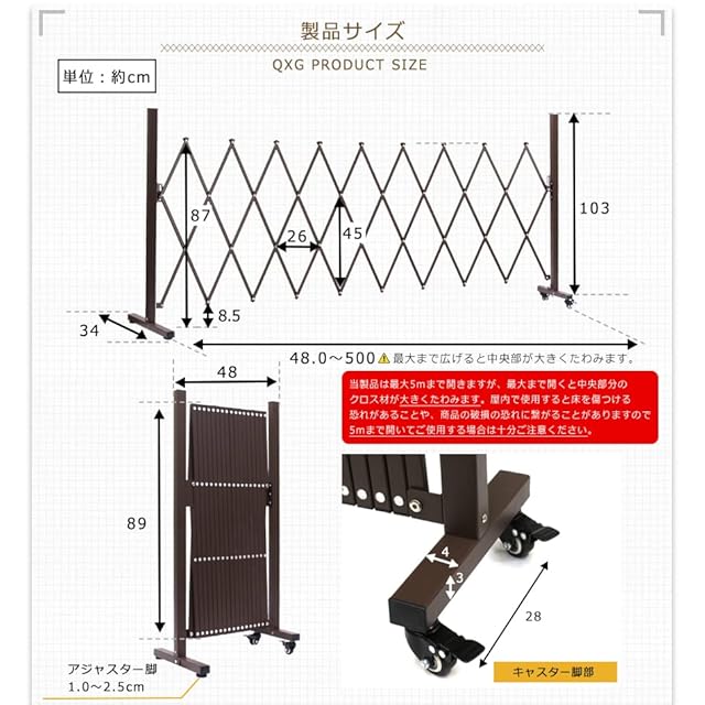 材 質 :フェンス=アルミニウム、脚部=アルミニウム、キャスター/アジャスター=スチール、ゴム