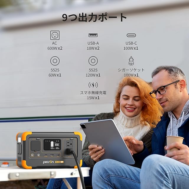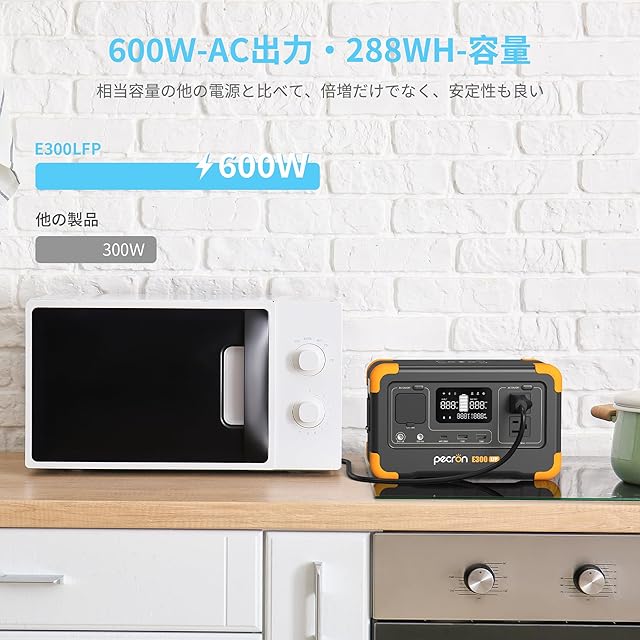 PECRON ポータブル電源 E300LFP 600W/288Wh 小型 リン酸鉄 AC定格600W APP遠隔操作 UPS ポータブルバッテリー 1.2時間満充電 Type-c充電可 LEDライト付き ソーラー充電 蓄電池 キャンプ 車中泊 アウトドア 停電対策 防災 50Hz/60Hz対応
