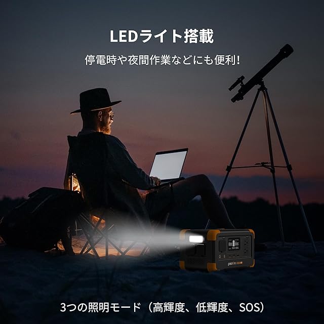【LEDライト付き】停電や夜間作業時に、E300LFPポータブル電源は懐中電灯として活躍します。高輝度、低輝度、SOSの3つの照明モードが搭載されています。