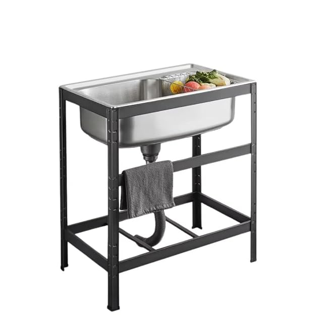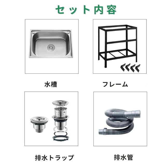 MISHIP ガーデンシンク キッチン用流し台 ステンレス製 長さ60×幅45×高さ75cm 高さ調節可能 水が飛散しにくい 簡易シンク 屋外 屋外作業 工具不要 コンパクト 工場 農園 ステンレスシンク
