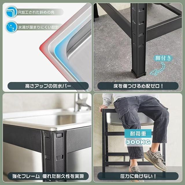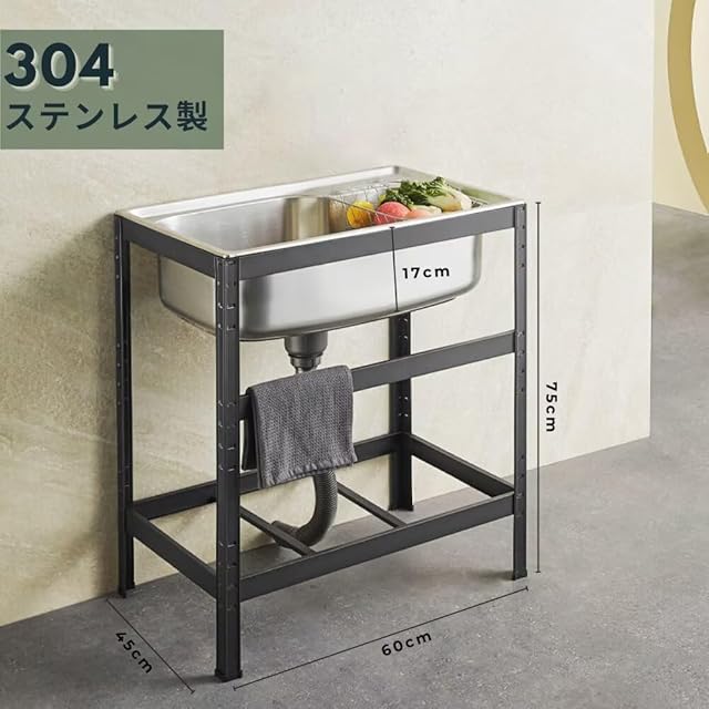 ステンレス製の高品質:腐食や摩耗に強く、長持ちする安心のステンレスを使用し、耐久性に優れています。長さ60×幅45×高さ75cm