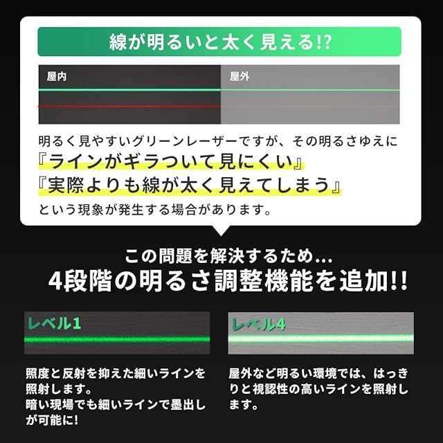 ✅【シリーズ累計 96,000台突破!】VOICE レーザー墨出し器から、デザインと機能をアップグレードしたモデルが登場。マットブラックを基調としたスタイリッシュなデザイン。専用アプリを使うことで、手元のスマートフォンから「照射ライン」や「ラインの明るさ」の調整が可能に。