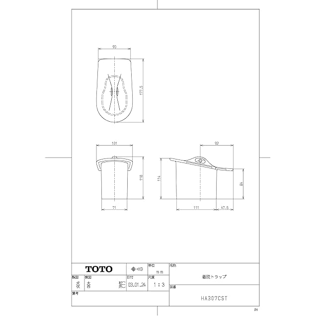 TOTO 着脱トラップ パステルアイボリー HA307CST#SC1