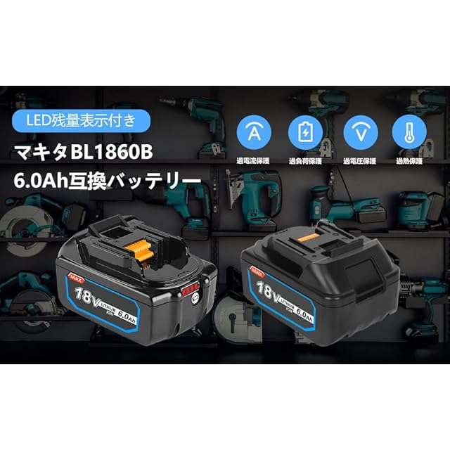 幅広く使われる: マキタバッテリー18v BL1860B 対応の機種:BL1860B、BL1850、BL1840、BL1830、BL1830B、BL1820B、BL1815、BL1815N など。このBL1860互換バッテリーはたっぶり6.0Ah 超高容量入っており、頻繁に充電する必要ないです。