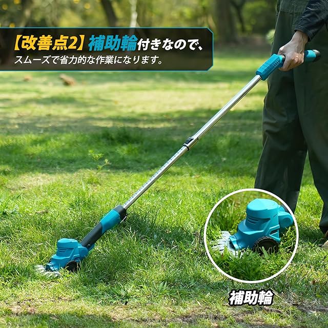【画期的な補助輪を搭載した電動芝生刈り機!】補助輪により、芝生の刈り取り作業が格段にスムーズかつ迅速に行えます。補助車輪は重要な支えとしての役割を果たします。電動芝生刈り機に延長杆を取り付けると、作業者は立ったままでも簡単に芝生を刈ることができます。腰をかがめたり、長時間の姿勢維持に苦労する必要がなくなり、作業者の疲労を大幅に軽減します。当社の電動芝生刈り機は、補助車輪の存在により、あなたの庭仕事を一層効率的かつ快適にサポートします。