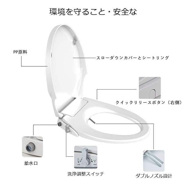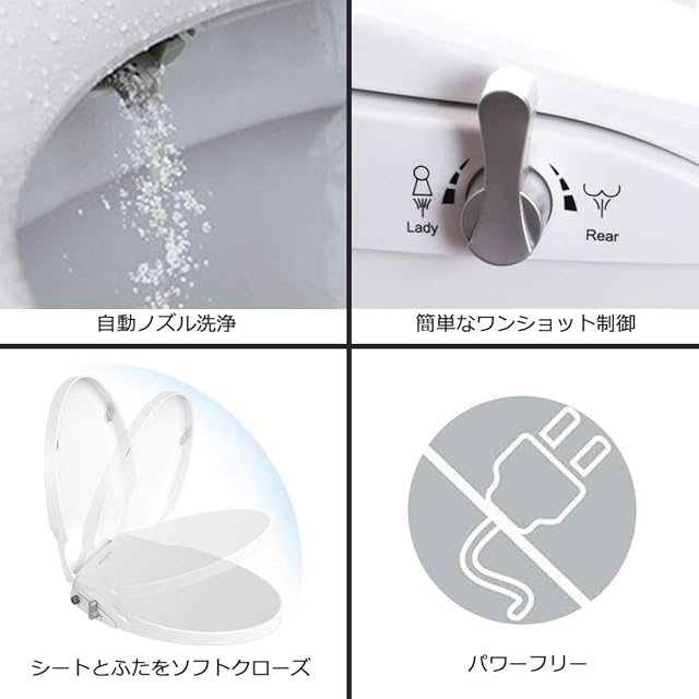 電源不要 シャワートイレ 洗浄便座 水洗浄便座 水圧式 非電源式 簡単なインストール (ホワイト)
