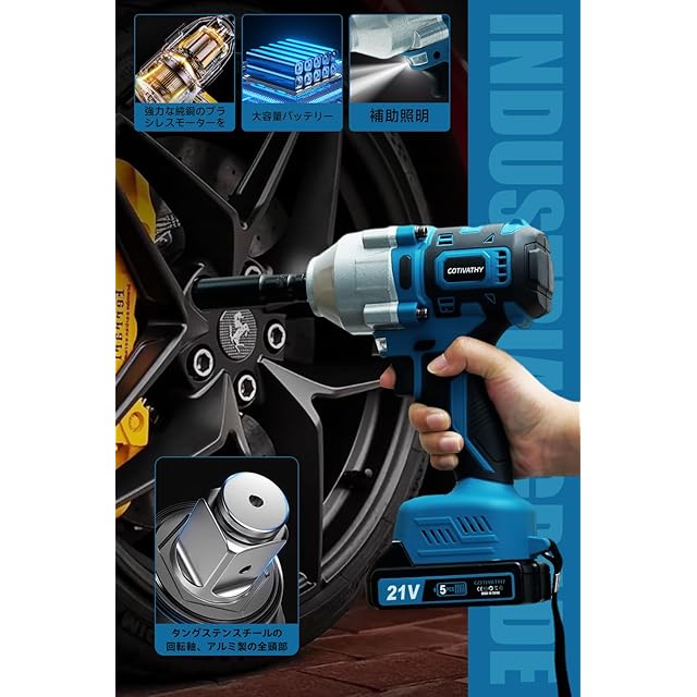 コードレスインパクトレンチ 650N.m インパクトレンチ 電動インパクトドライバー インパクトドライバー トレンチ タイヤ交換 インパクト 車のタイヤや家庭用の電動インパク BS-BLUE