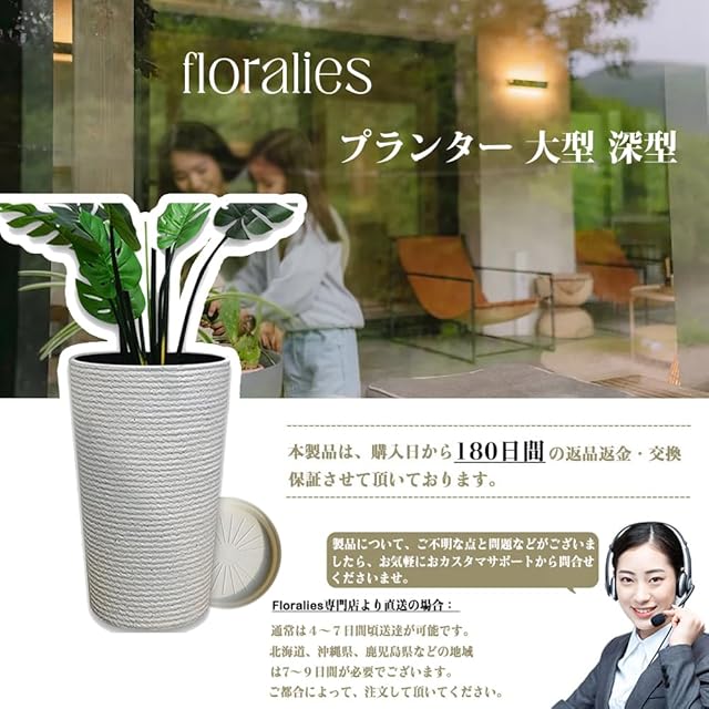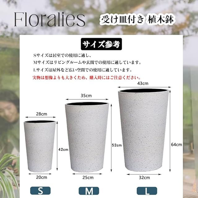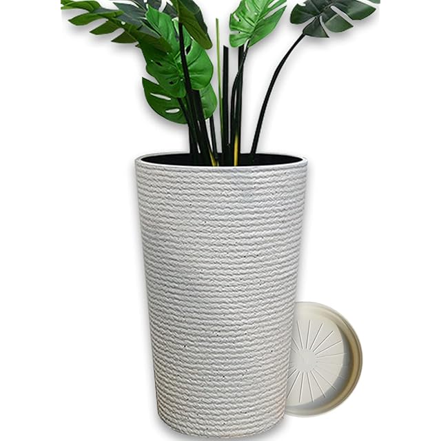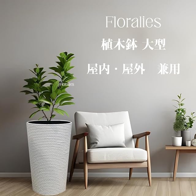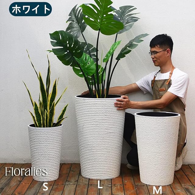 Floralies プランター 大型 おしゃれ 受け皿付き 植木鉢 大型 軽量 屋内 屋外用 プランター 深型 高さ42cm 排水穴付 観葉植物 鉢 植木鉢 (ホワイト( 高さ42cm), 1個当たり)