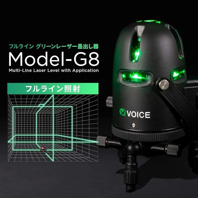 VOICE レーザー墨出し器 フルライン グリーンレーザー Model-G8 レーザー フルライン照射モデル アプリからの遠隔操作 タッチスイッチ